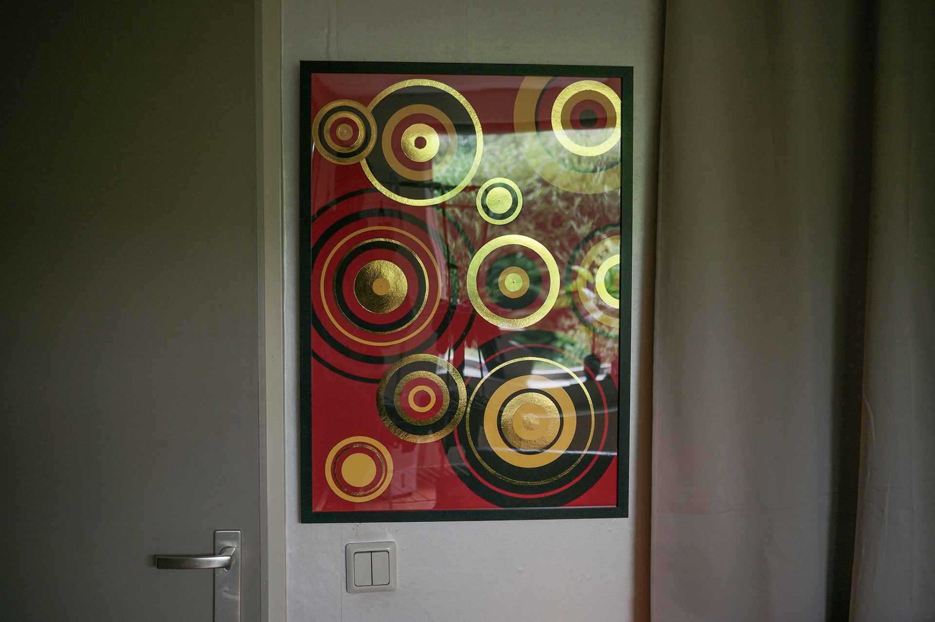 What can I say? I like the Chinese color palette. I also enjoy the rain so far. I remember the extreme hot summers all to well, and that makes me appreciate it even more. Canvas = 50 x 70 cm made with colored paper and gold mirror/metallic paper.