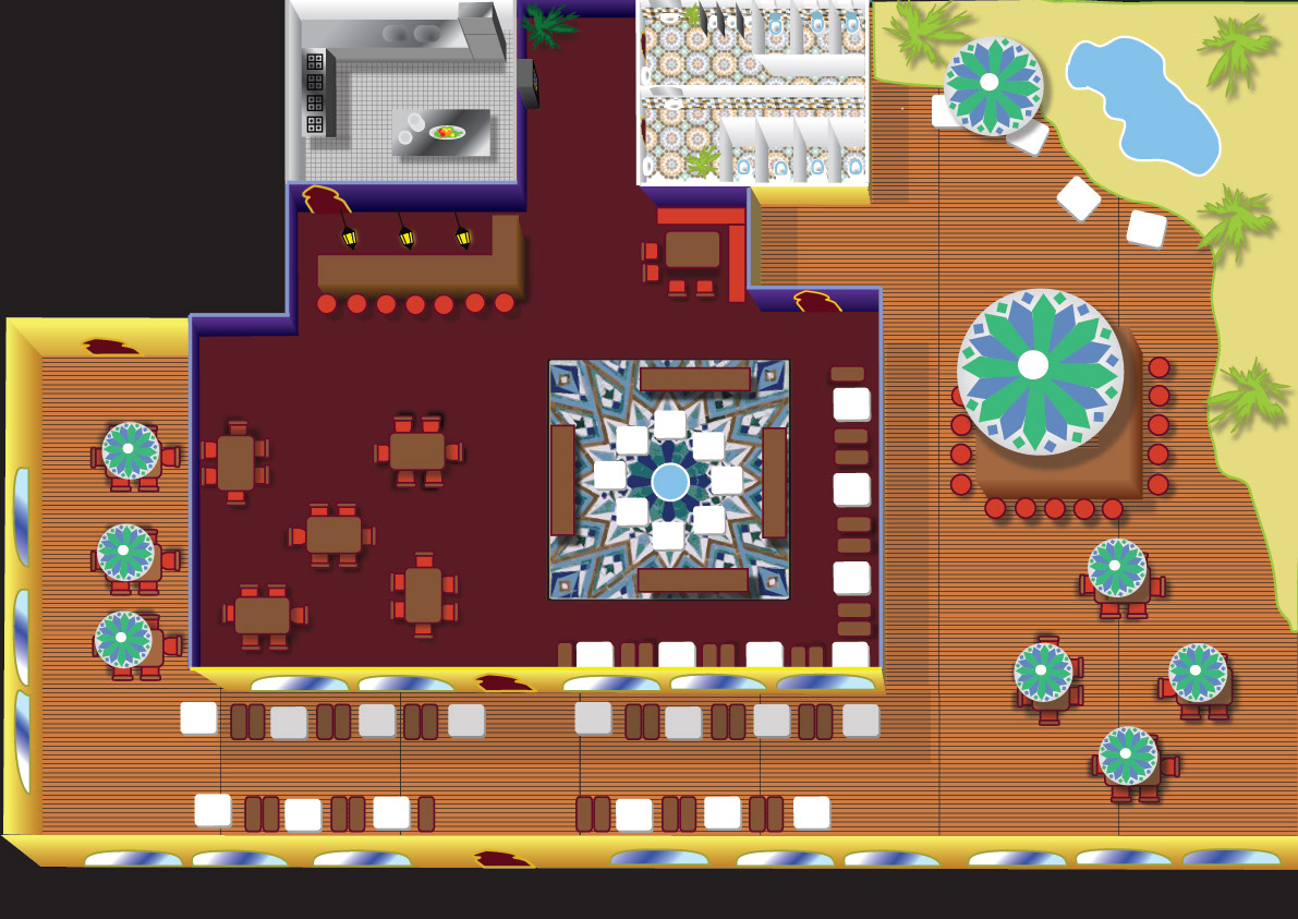 Een plattegrond van een strandtent gemaakt in Adobe Illustrator